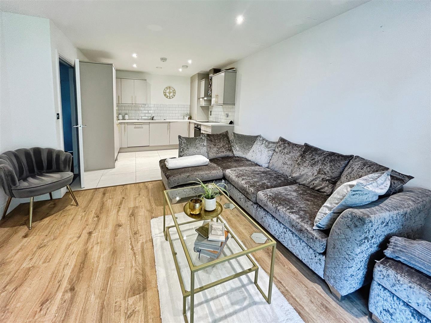Step inside to a bright and spacious open-plan lounge and kitchen, where a large window floods the living area with natural light, creating a warm and welcoming atmosphere. The contemporary kitchen features stylish units and quality fittings — perfect for both relaxing and entertaining.