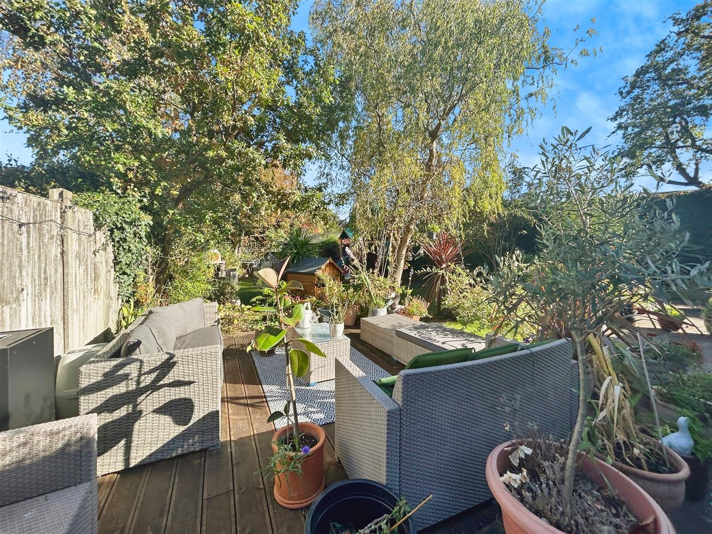 - Beautifully landscaped rear garden with seating areas, offering a “secret garden” feel