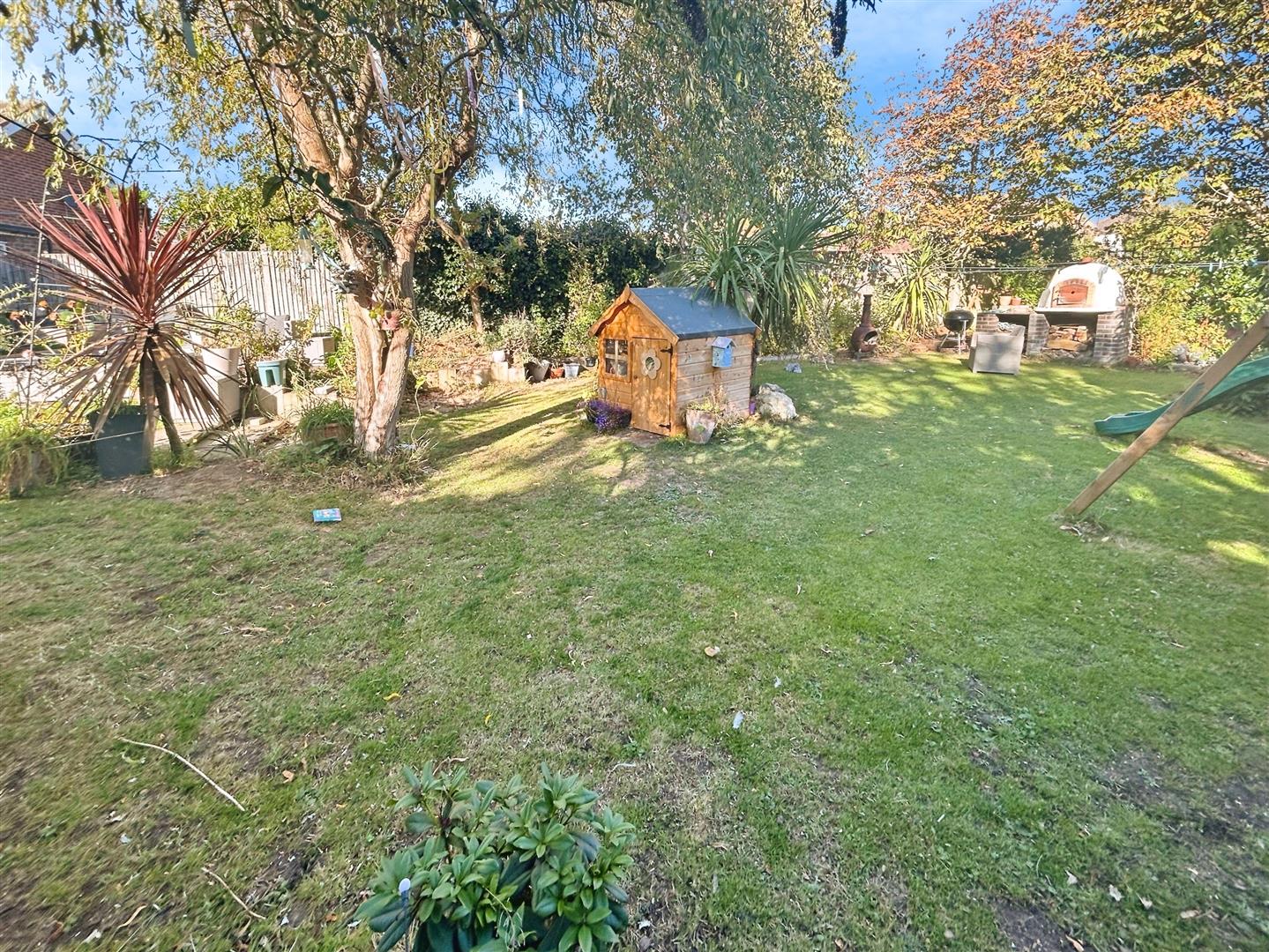 Externally, the property continues to impress. To the front, there is ample parking, while the rear garden feels like a private retreat. Landscaped with charm, it offers a variety of seating areas for entertaining, a play frame for children, and a modern shed, thoughtfully added by the current owners.