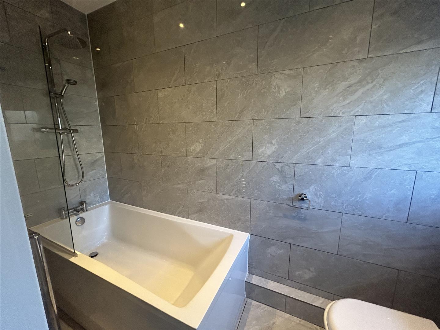 - Modern Spacious Bathroom With Shower Over Bath