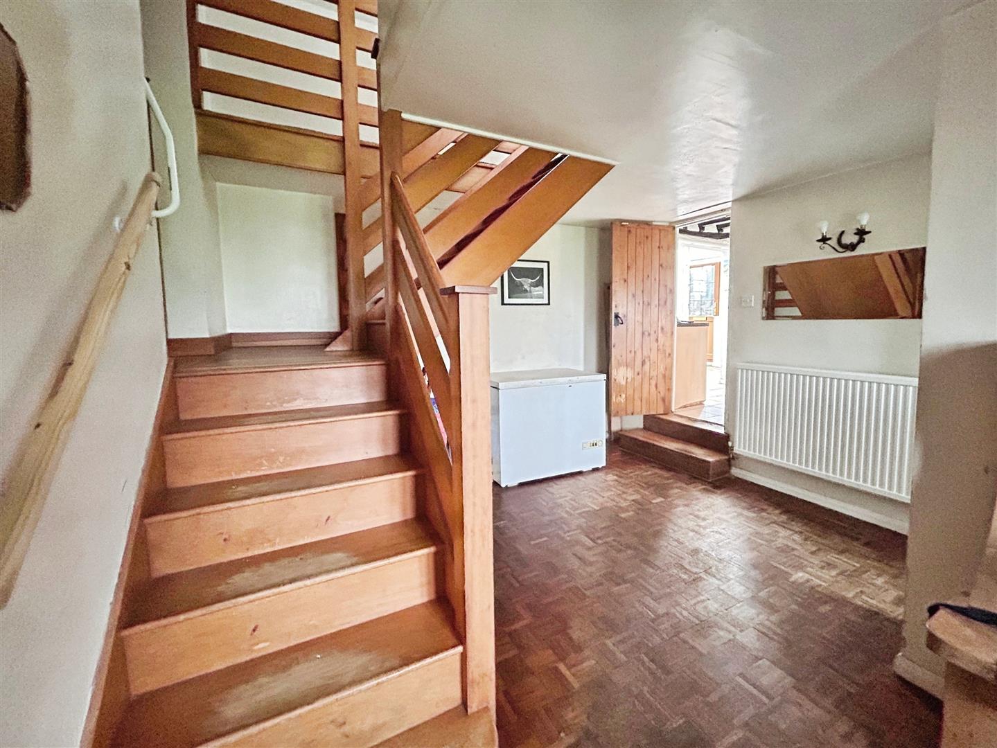 Believed to date back to the 1600s, the original part of the main house exudes character and charm throughout. The property offers two generous reception rooms, both featuring open inglenook fireplaces, a welcoming reception hall, a kitchen, dining area, and ground floor WC — all providing flexible and comfortable living space.