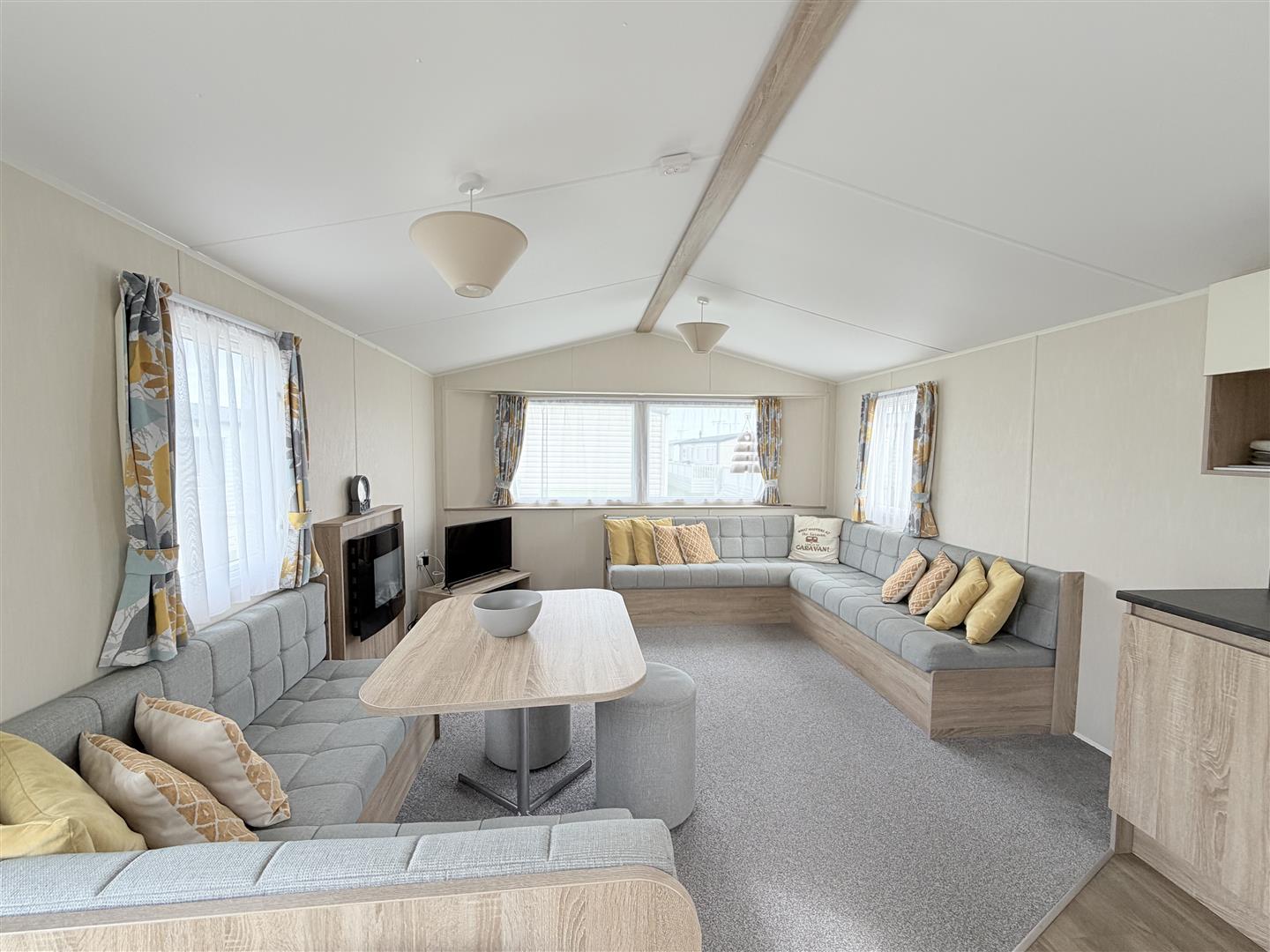 Inside, the Etchingham offers a bright and airy open-plan living space, ideal for relaxing or entertaining. Comfortable sofa seating (including a sofa bed) provides flexible accommodation for guests.