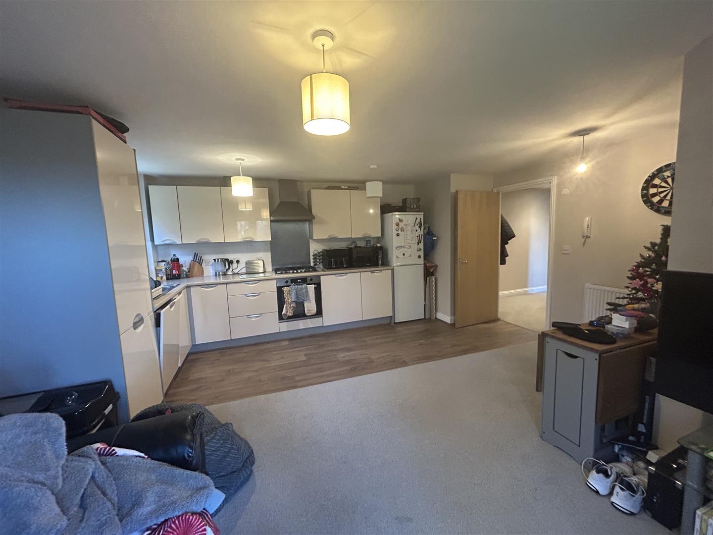 The property offers two bedrooms and a bright open-plan living and kitchen area, finished to a modern standard and complete with integrated appliances, making it ideal for contemporary living. The lounge benefits from a Juliet balcony, allowing plenty of natural light.