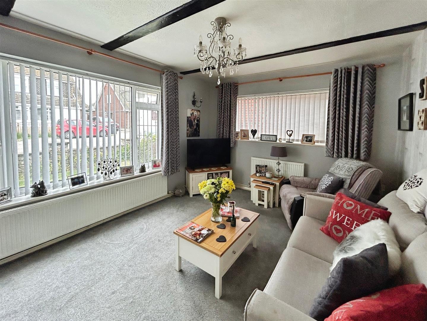 Set behind a well-maintained front garden filled with mature plants, the property boasts excellent kerb appeal. A private driveway leads to a detached garage, providing ample off-road parking.