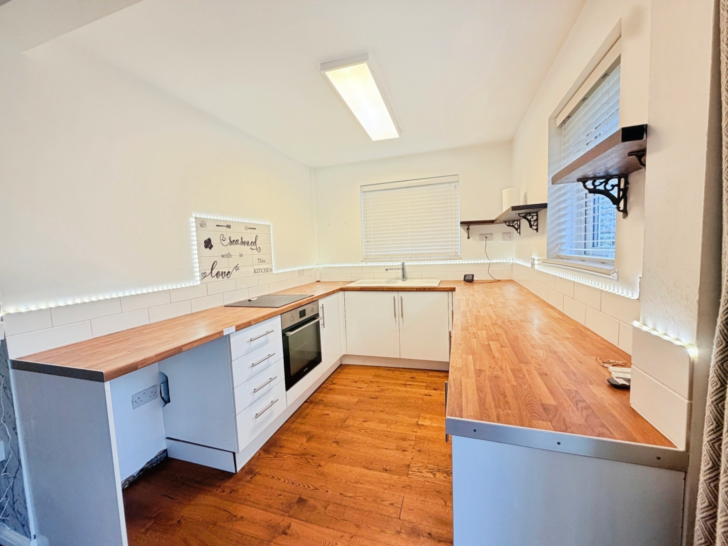 The modern family bathroom features a stylish four-piece suite, including twin sinks for added convenience. To the rear, the heart of the home is the generous open-plan lounge and dining area, which flows seamlessly into a contemporary fitted kitchen—perfect for both everyday living and entertaining.